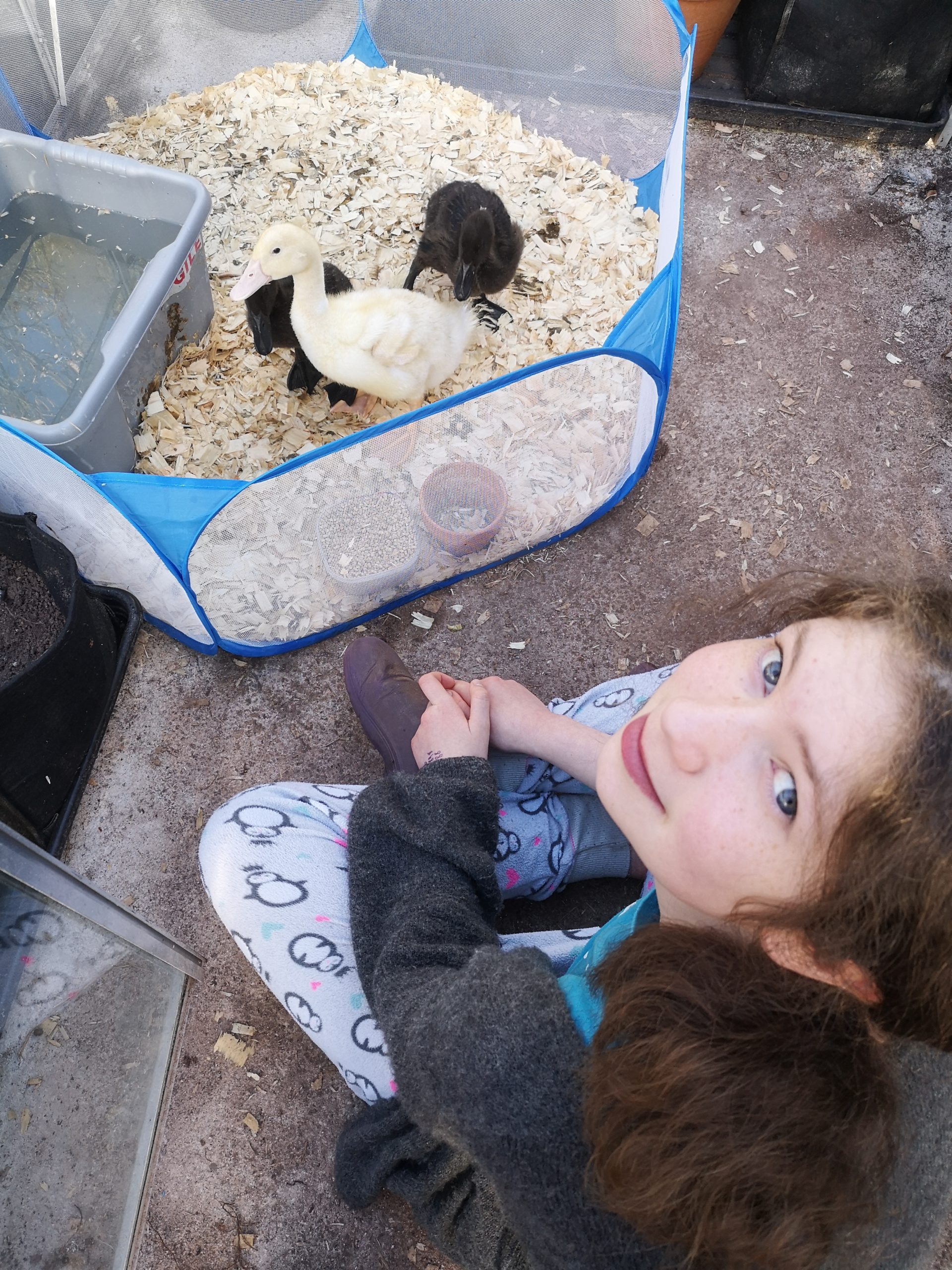 This spring I started keeping ducks. I have three ducklings that are about four weeks old now (14 May 2021). They are named after the Greek Gods and Goddesses Zeus, Hestia, and Gaia. Zeus and Hestia are Cayugas which are Cayugas. Cayugas are completely black with iridescent feathers. Gaia is an Aylesbury duck and will be a big white duck like Jemima Puddleduck (a storybook character featured in Beatrix Potter’s stories of Peter Rabbit and Friends.)